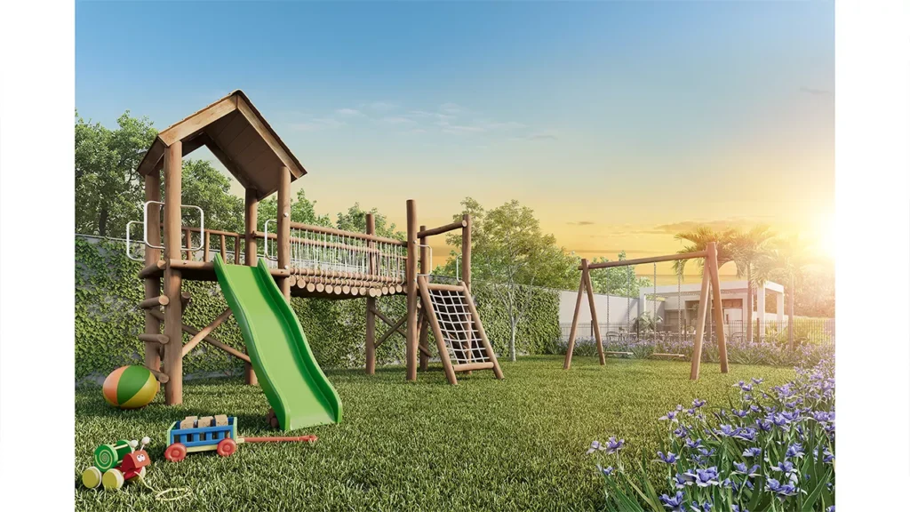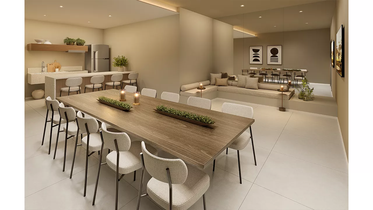 Além disso, o planejamento do empreendimento permite uma distribuição equilibrada entre áreas residenciais e espaços comuns, favorecendo o bem-estar dos moradores.