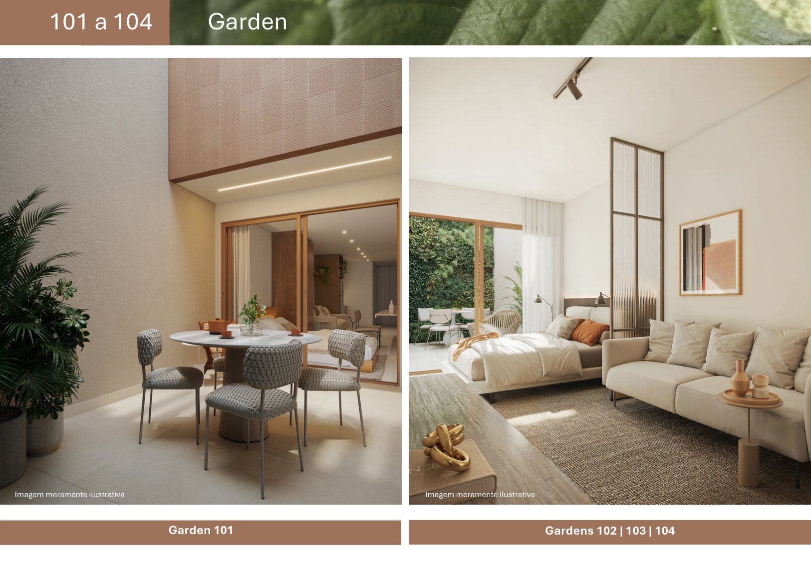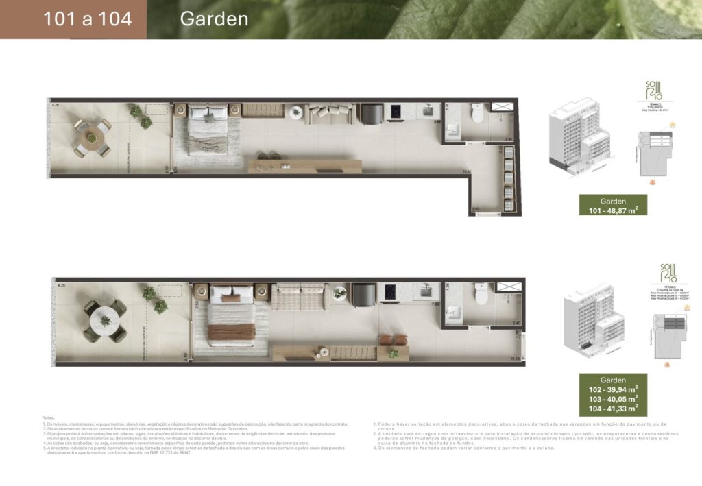 - 04 unidades Studio Garden com metragens de 29,94 m² a 48,87 m²