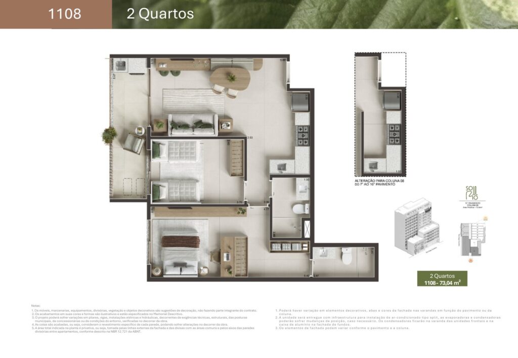 Um dos grandes diferenciais do Soul Rio Gago Coutinho é a variedade de plantas disponíveis. Dessa forma, o empreendimento atende desde quem busca um imóvel compacto até famílias que desejam mais espaço.