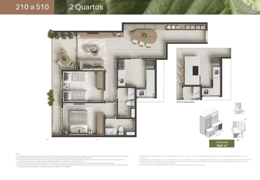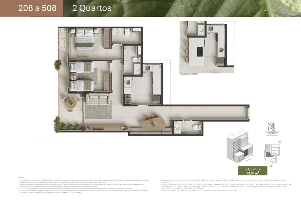 - 18 unidades de 2 quartos com suíte com metragens de 62,16 m² a 82,65 m²